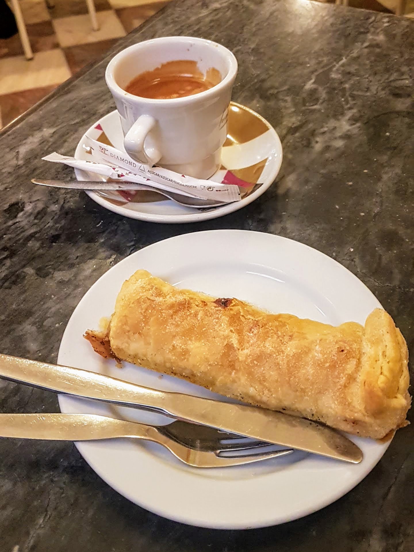 Przed dalszą częścią wycieczki zatrzymałam się na kawę w kawiarni Casa Piriquita, która również znajduje się w centrum i ma ponad 150 lat. Można tutaj zjeść kolejne tradycyjne lokalne ciastko, Travesseiro. Nazwa tego ciastka oznacza poduszkę i nawiązuje do jego kształtu. W środku jest słodkie nadzienie migdałowo – jajeczne, dlatego świetnie komponuje się z gorzką portugalską kawą.