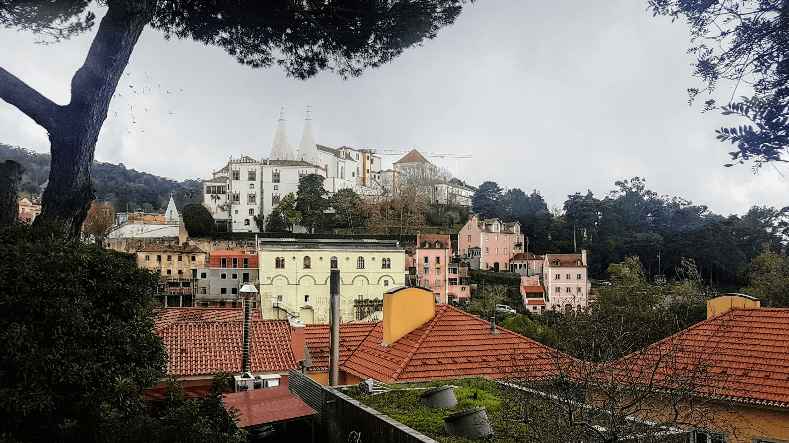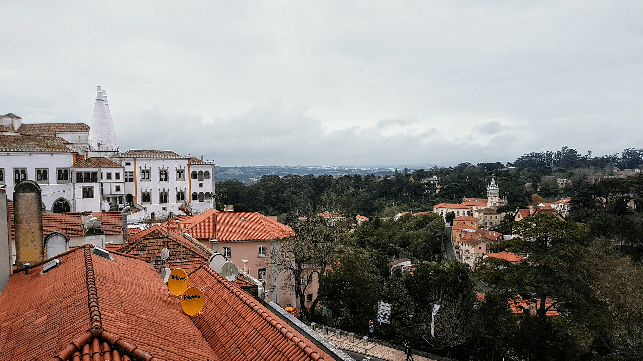 Poniższe zdjęcie zostało zrobione właśnie podczas drogi ze stacji kolejki do centrym Sintry. Właśnie dla takich widoków warto tutaj być. Na przeciwległym wzgórzu znajduje się zabytkowe centrum miasta z królującym na szczycie gotyckim Pałacem Narodowym – jednym z najważniejszych budynków.