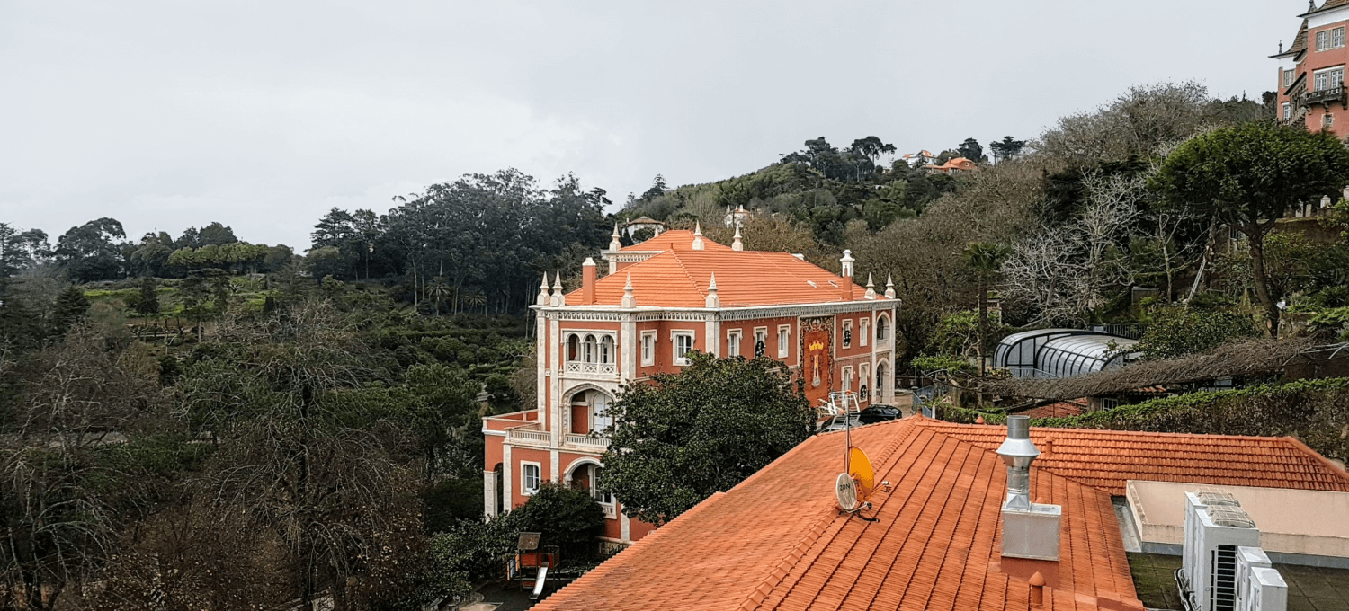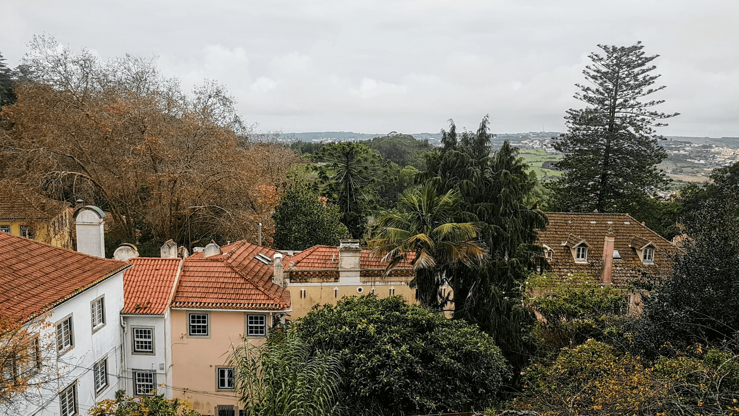 Można stąd oglądać panoramę na drugą stronę wzgórza pełną starych typowo portugalskich domów z dachami zrobionymi czerwonej cegły. W większości z nich żyją mieszkańcy Sintry.
