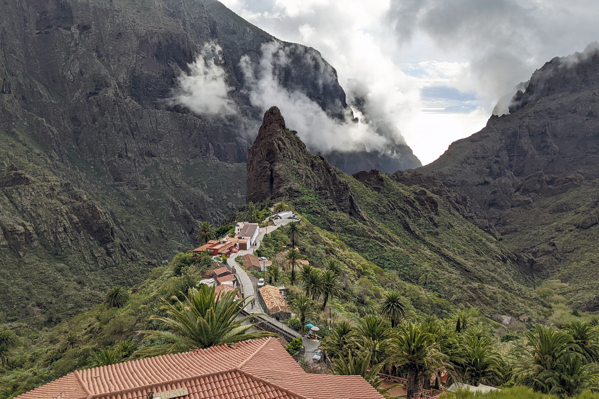 Wąwóz i wioska Masca to jedno z najpopularniejszych miejsc na Teneryfie. Wizyta tutaj jest niezapomnianą przygodą. Podziwiać prawdziwe dzieła sił natury, takie jak wysokie, bazaltowe ściany, na których widać wiele warstw skał i przecinające je żyły wulkaniczne. Ciekawostką jest, że jeszcze do niedawna nie było tu drogi i wioska była zupełnie odcięta od świata, a jej mieszkańcy przemieszczali się na osiołkach. Obecnie to niewielka osada, w której na stałe mieszka zaledwie kilkadziesiąt osób. Co roku Masca jest odwiedzana przez setki tysięcy osób z całego świata. Będąc tutaj spotkałam się ze stwierdzeniem, że to takie małe „Machu Picchu” Teneryfy, co jest całkiem trafne. Podczas mojej styczniowej wizyty tutaj miałam idealną pogodę. W ciągu dnia gorące słońce, a wieczorem w wąwozie zaczęły zbierać się chmury, co sprawiło, że krajobraz był jeszcze bardziej niesamowity.
